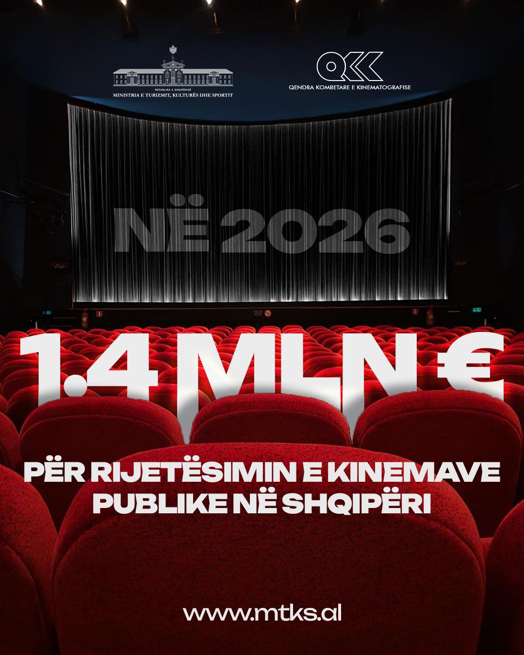 Ministria Turizmit, Kulturës dhe Sportit do të investojë rreth 1.4 milion euro për ri-jetësimin e kinemave në vendin tonë gjatë vitit 2026!