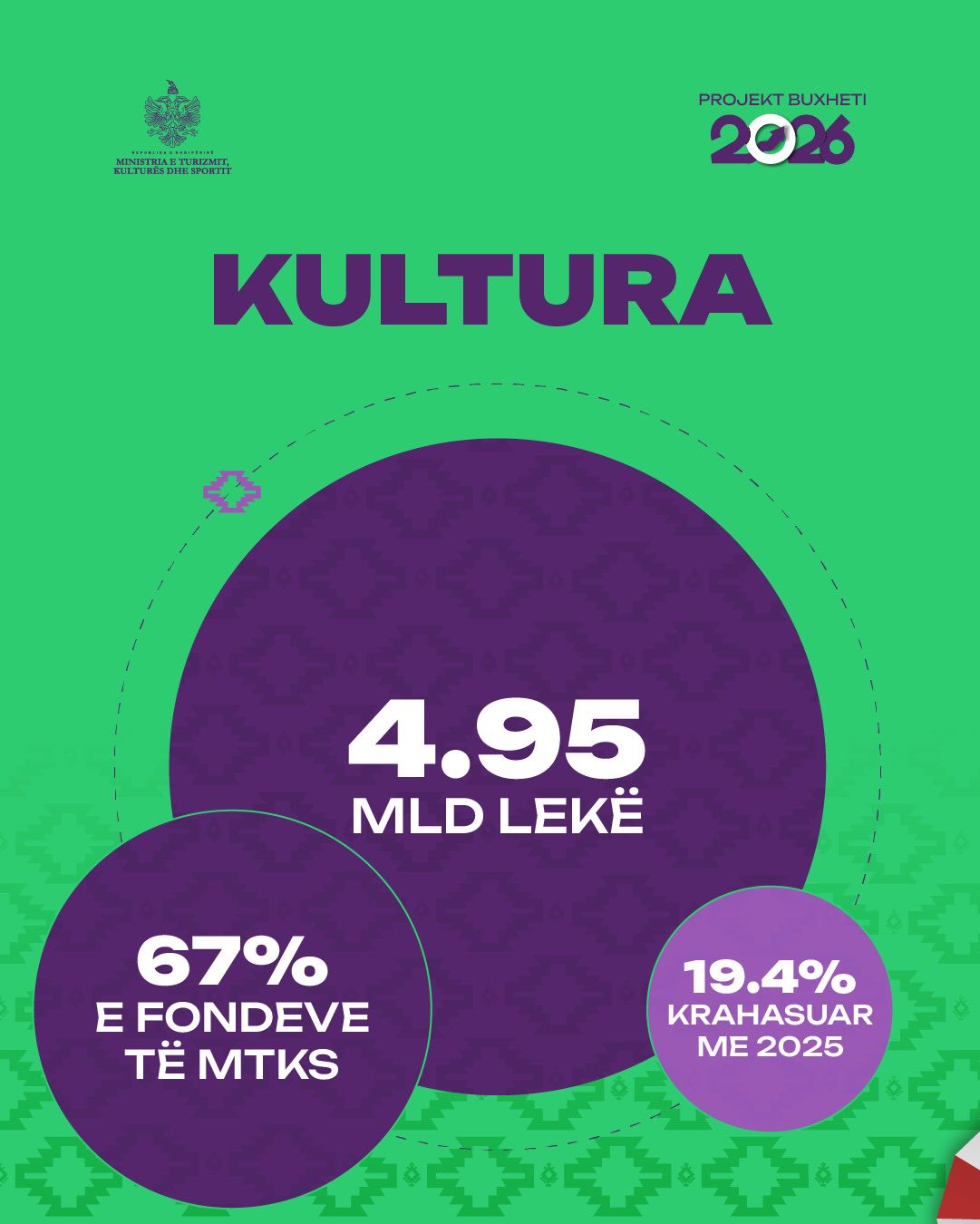 Kultura: 4.95 mld lekë, 67% e fondeve të ministrisë, +19.4% krahasuar me 2025